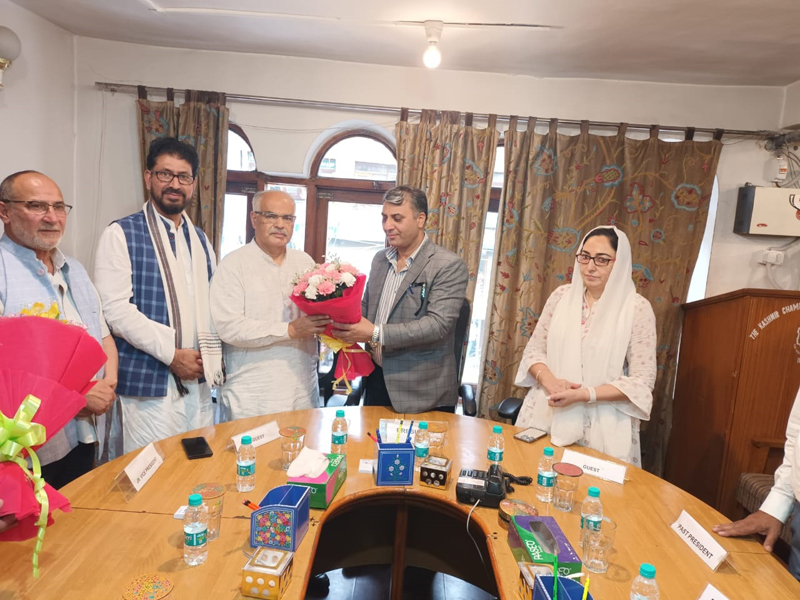 SRINAGAR, June 10: J&K BJP General Secretary (Org) Ashok Koul & Minister of State & Chairperson J&K Waqf Board, Darakhshan Andrabi today met Kashmir Chamber of Commerce & Industry as a part of ‘Sampark Se Samarthan’ Programme.