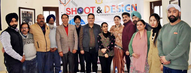 Ashwani Sharma, President Press Club Jammu, other dignitaries and participants of workshop on Photography and Design posing for group photograph.