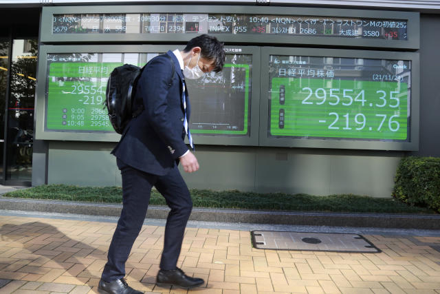 Japan’s Nikkei 225 dropped 1.1% to 29,436.73 in early trading, following a national holiday Tuesday. South Korea’s Kospi slipped 0.3% to 2,988.40. Australia’s S&P/ASX 200 edged down nearly 0.1% to 7,403.30. Hong Kong’s Hang Seng shed 0.3% to 24,588.48, while the Shanghai Composite fell 0.4% to 3,575.93.