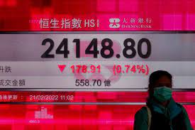 Bangkok, Feb 21:Asian shares were mostly lower Monday after a retreat on Wall Street, as investors watched for developments in Ukraine after Russia rescinded earlier pledges to pull tens of thousands of its troops away from Ukraine’s northern border.
