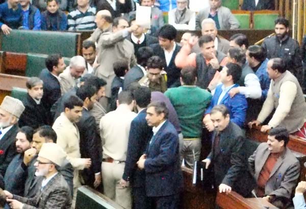 This provoked the Majid and he left the well and proceeded towards PDP MLA to take on him physically. He also took a laptop and tried to throw it towards the MLA. But Marshals and other MLAs from Treasury benches and opposition stopped him from proceeding towards Noor Mohammed’s chair.