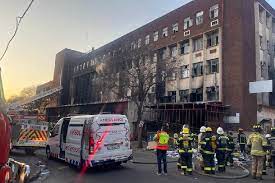 A video posted by Mulaudzi on X, formerly known as Twitter, showed fire trucks and ambulances outside the building with burnt-out windows.