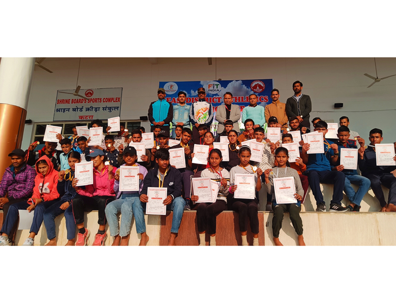 Athletes posing with certificates during the closing ceremony of District Athletic Championship on Thursday.