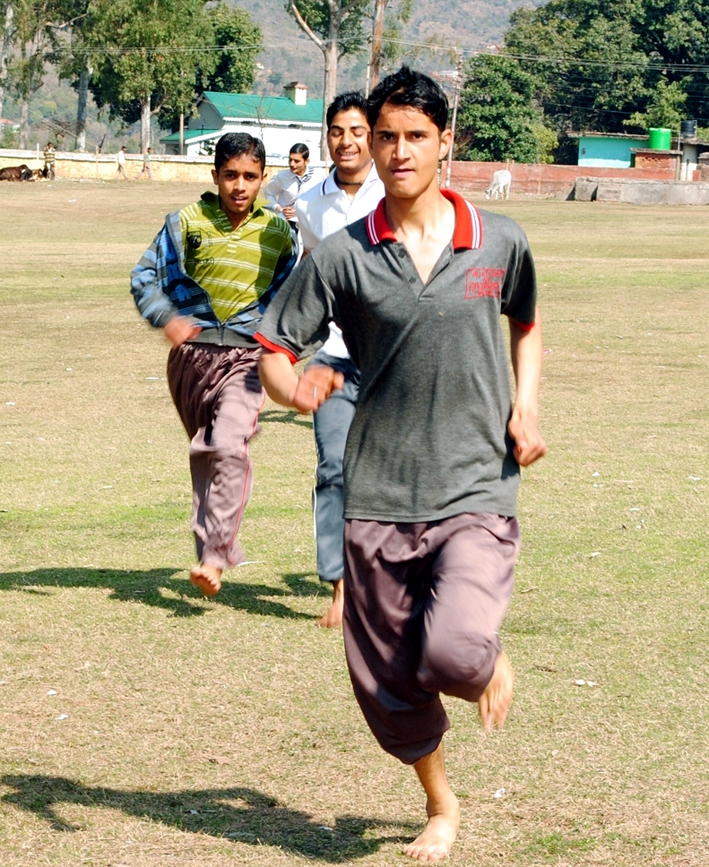 Athletes sweating it out during Sports Meet at Udhampur on Thursday.