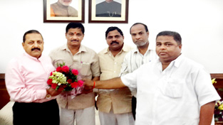 NEW DELHI, July 10: A deputation of National Federation of Atomic Energy Employees, led by its Working President M.B.Vijaya Kumar, called on Union Minister of State (Independent Charge) for Development of North Eastern Region (DoNER), MoS PMO, Personnel, Public Grievances, Pensions, Atomic Energy and Space, Dr Jitendra Singh at his office here and thanked him for sanctioning in their favour, pension benefits according to the earlier pension scheme, as desired by them. This landmark decision, they said, has been unanimously hailed by the 24,000 workforce of Atomic Energy employees spread all over the country with headquarters in Mumbai, and will directly benefit at least 195 serving employees.