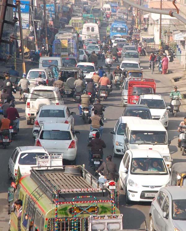 Traffic jam on Janipur-New Plot road on Monday – Excelsior/Rakesh