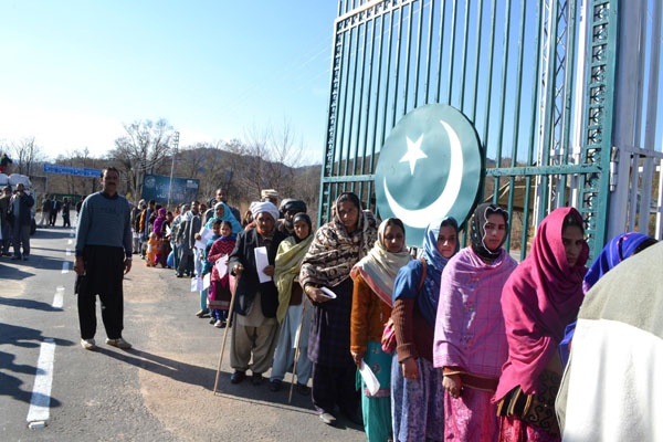 People queue up at Chakan-Da-Bagh on way back home in Poonch...