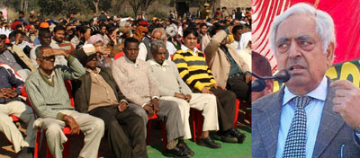 Former Chief Minister and PDP patron Mufti Mohammad Sayeed addressing a...