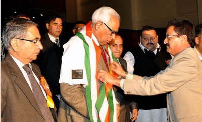 Governor N N Vohra being honoured by JKPF at Jammu University...