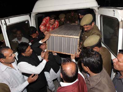 Chamel Singh’s body being shifted to GMC Jammu on Wednesday. ...