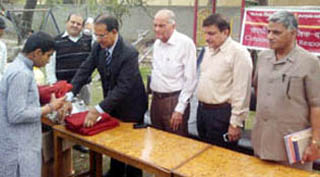 An official of PNB, Circle-office, Jammu, distributing essental items to inmates...