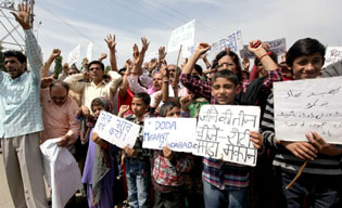 Doda Migrants protesting against Government during a protest rally at Jammu...
