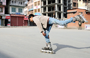 Museeb Bhat skating at Lal Chowk in Srinagar. -Excelsior/Amin War