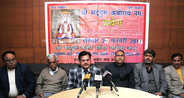 President of All J&K SSGKS FC Bhagat addressing media persons ...