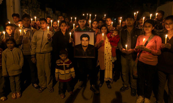 Children taking out candle light procession at Ploura in Jammu demanding...