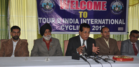 Sports Minister R S Chib interacting with media persons at Bakshi...