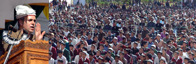 Chief Minister Omar Abdullah addressing a gathering at Islamia Faridia in...