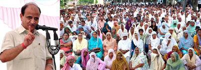Deputy Chief Minister Tara Chand addressing gathering at Khour on Friday.