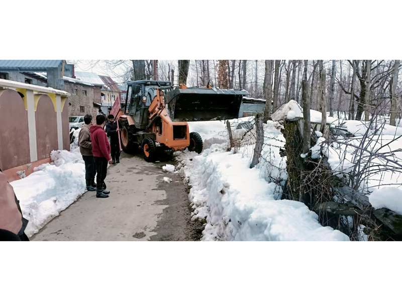 Encroached land being retrieved from son of ex-Forest Minister and NC leader Peerzada Ghulam Ahmad Shah at Qazigund on Thursday. —Excelsior/Sajad Dar