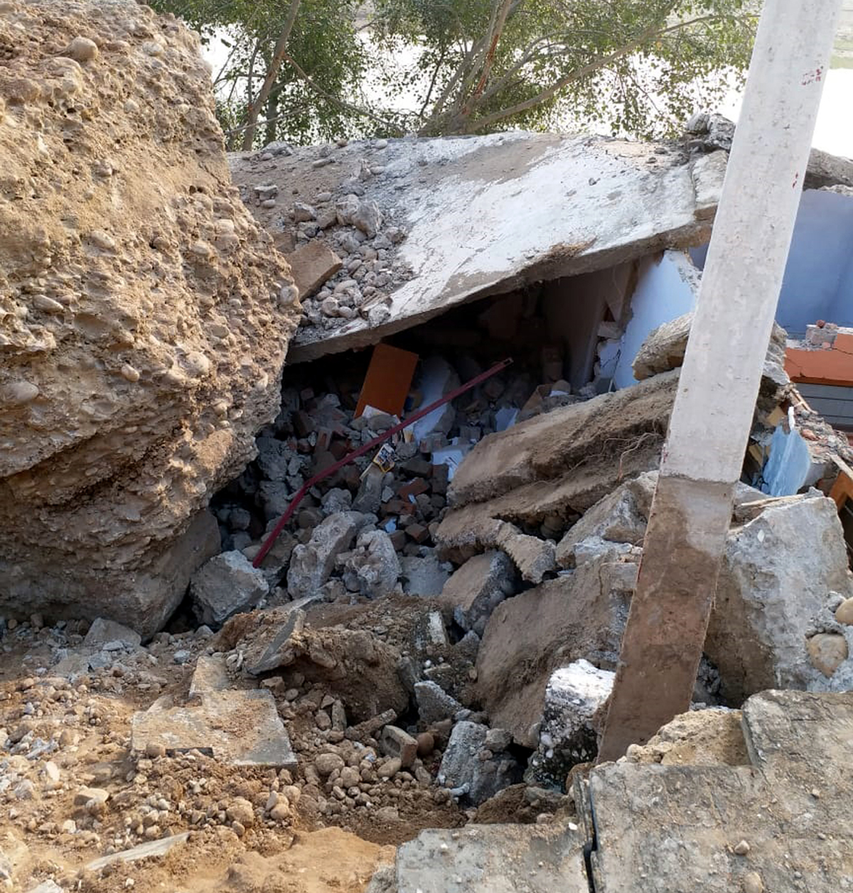 On the intervening night of 24th & 25th September 2018 around 12:15 AM, Chandra Gufa Sadhna Mandir witnessed very loud thundering noise and found complete hillock coming down within the premises damaging the approach road and building extensively, though there was no loss to human life.