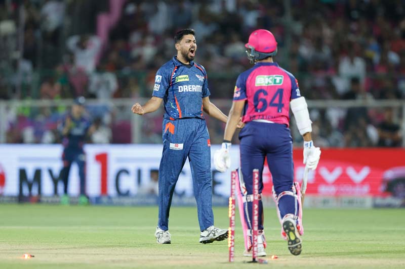 JAIPUR, Apr 19: Pacer Avesh Khan held his nerve in the death overs to help Lucknow Super Giants pull off a thrilling two-run win over Rajasthan Royals with a tight three-wicket spell in their IPL match here on Saturday.