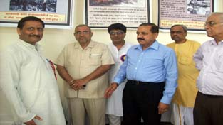 Avinash Rai Khanna, Dr Jitendra Singh, Ashwani Charungoo and other eminent guests going through the displays at KP ‘Exhibition in Exile’ held at Chandigarh on Sunday.