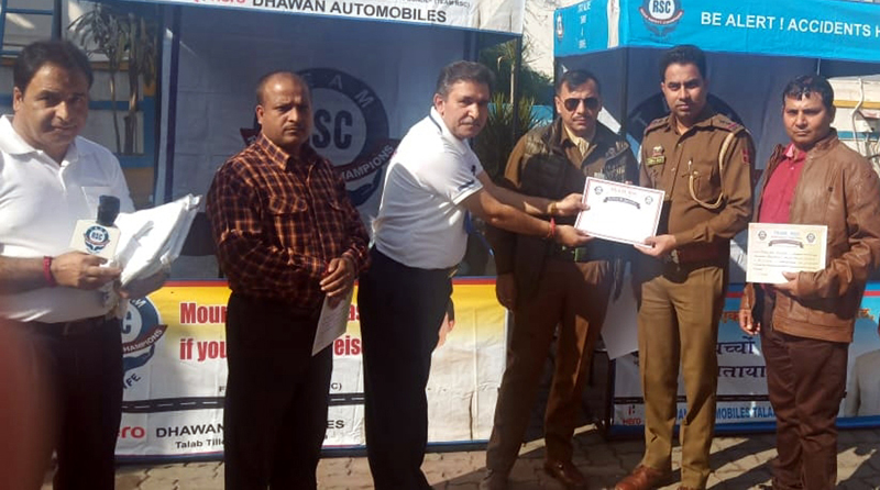 Pamphlets of Road Safety were also distributed among the road users and commuters to acquaint them about new amendments of MVL 2019 which has come into force on September 1, 2019. On the occasion, Bhat also distributed T-shirts and appreciation certificates to the dignitaries.