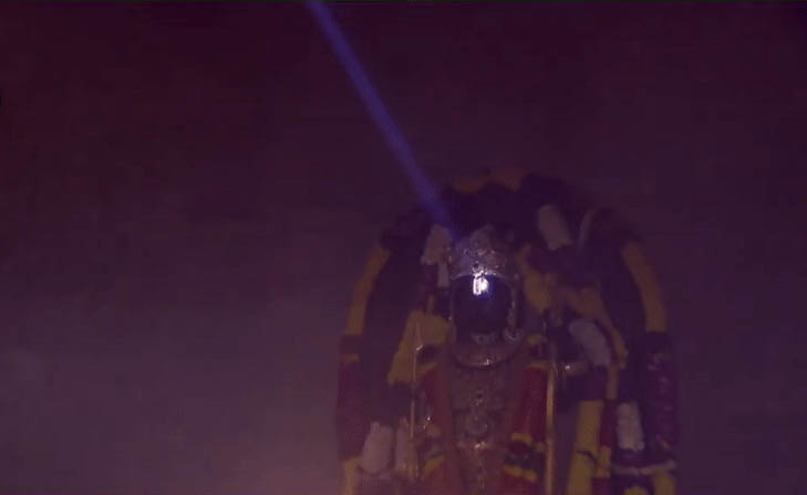 The ‘Surya Tilak’ occurred exactly at noon when a beam of sunlight precisely directed on the forehead idol of Ram Lalla and formed a celestial tilak.