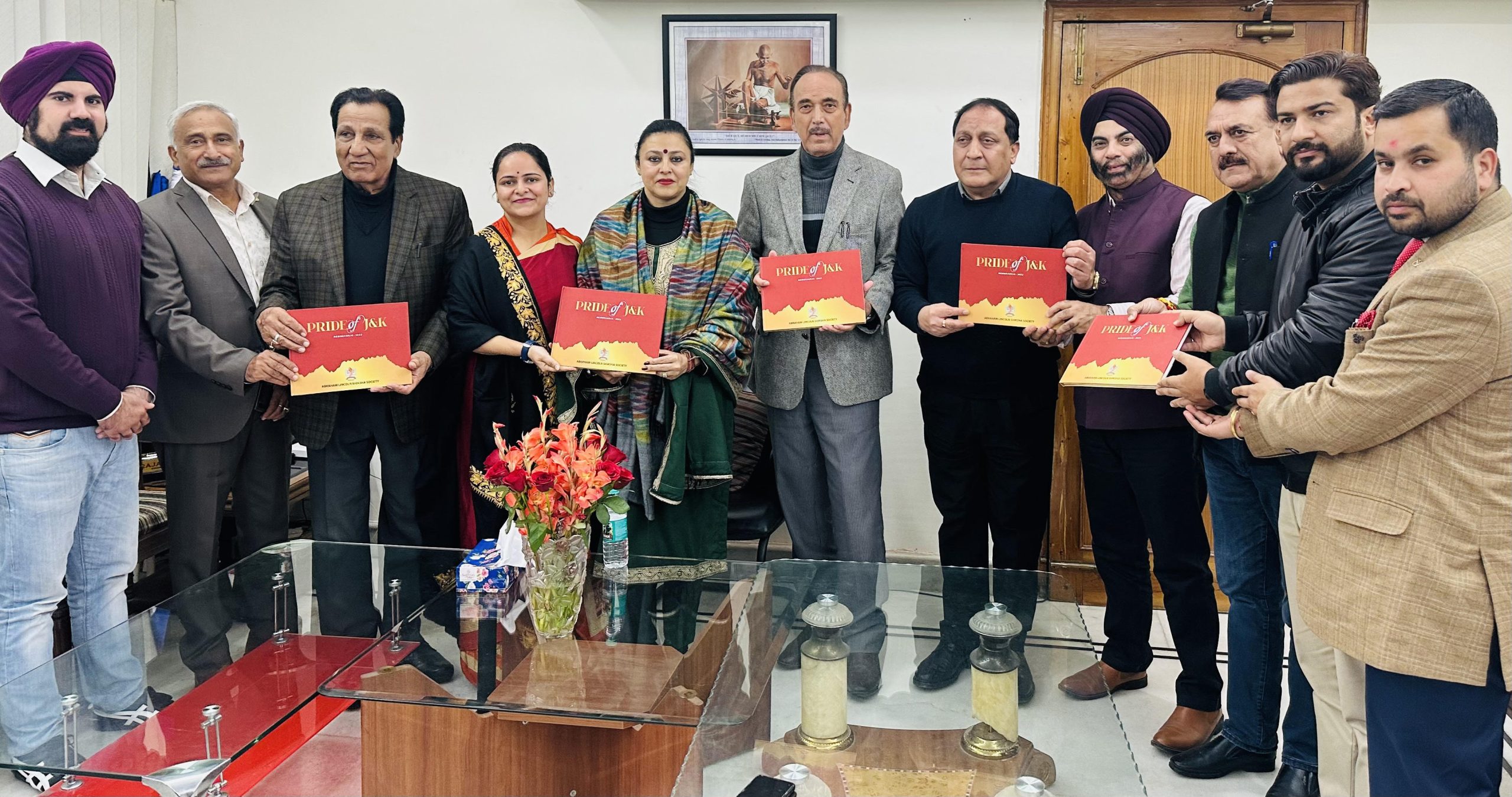 Former CM and DPAP chairman G N Azad flanked by others releasing magazine ‘Pride of J&K’ in Jammu on Wednesday.