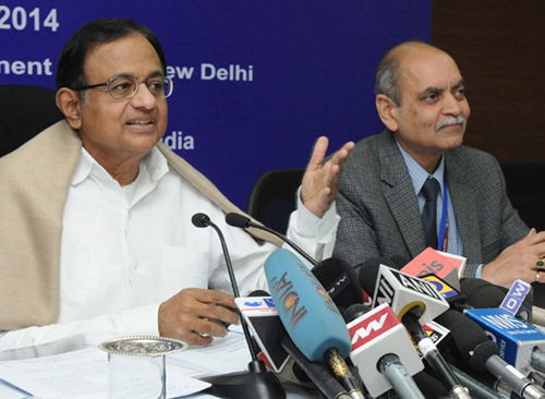 Union Finance Minister, P. Chidambaram addressing a Press Conference after holding the Quarterly Performance Review Meeting with the Chief Executive Officers (CEOs) of Public Sector Banks and Financial Institutions, in New Delhi on Wednesday. (UNI)