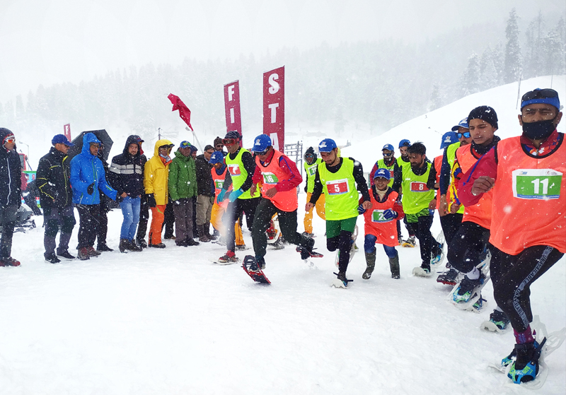 The run was flagged off by Secretary Sports Council Dr Naseem Javaid Chowdhary in presence of CEO Gulmarg Development Authority, Assistant Director Tourism Nasir Mehmood, President J&K SnowShoe Association Tariq Ahmad Zargar, Olympians Gul Mustafa, Nadeem and number of other senior players and officials.