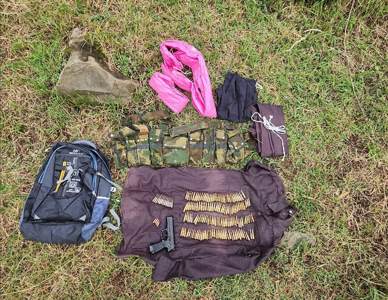 They said a bag was spotted lying near a natural cave and its search led to the recovery of a 9-mm pistol with a magazine and nine bullets, 159 bullets of AK assault rifle, one pouch, one dress, one black trouser and one waterproof suit.