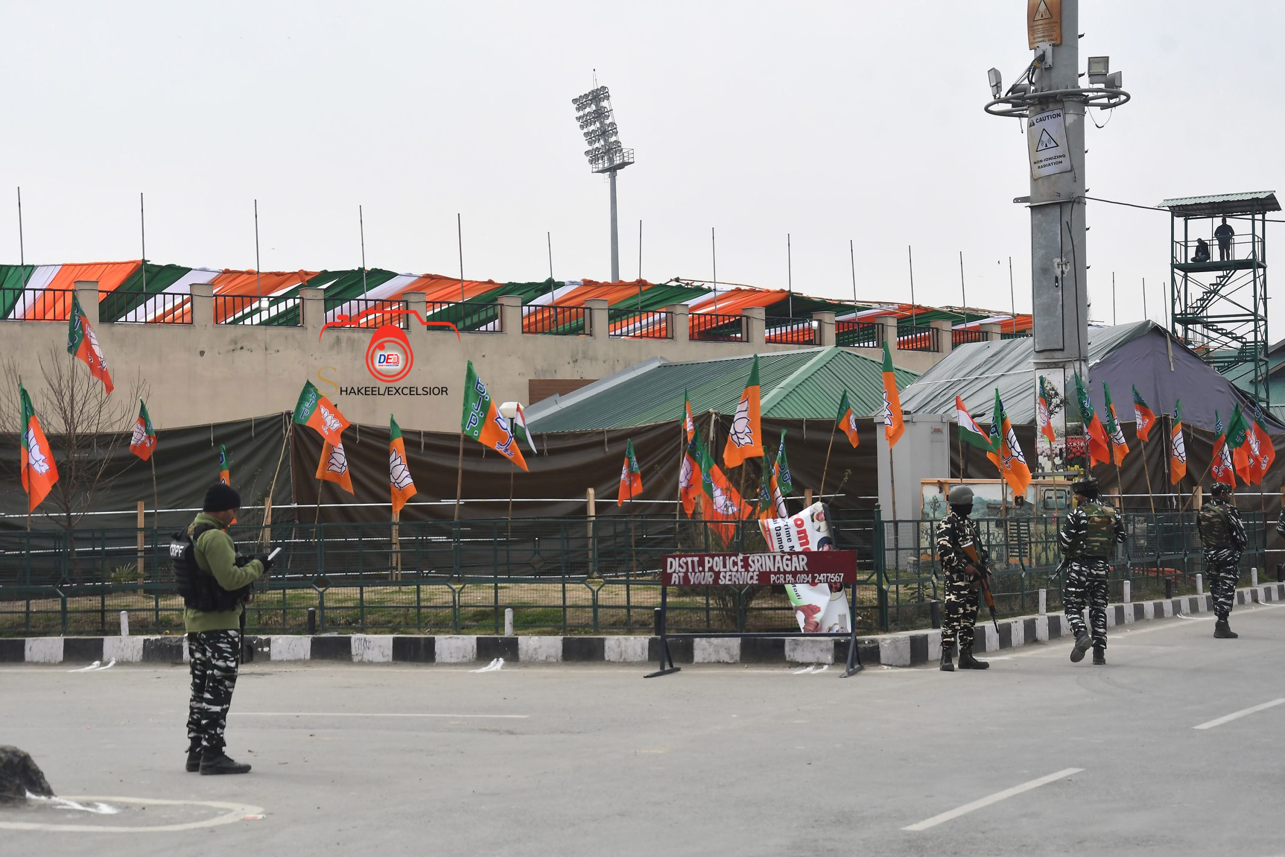 Srinagar, Mar 6: The Bakshi Stadium here has been draped in national tricolour for Prime Minister Narendra Modi’s visit on Thursday even as stringent security arrangements have been put in place to ensure the high profile event passes off peacefully.