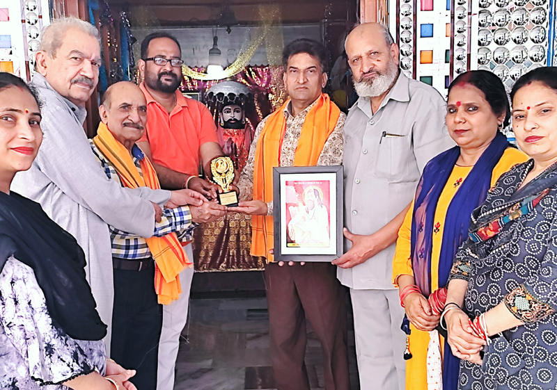 Balbir and Mahapeeth’s J&K vice president, Ashok Gandhi were felicitated by Ravi Dass Mandir Chairman, Ravi Angral in presence of senior vice president, Shiv Ram and secretary, Adarsh Jathiar by presenting Siropa and memento.