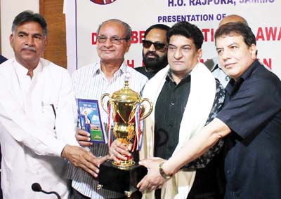 In an impressive function held here, today, International & National Awardee and Managing Director of Dr. Ambedkar Group of Convent Schools, Gian Chand Dogra, presented the Dr. Ambedkar National Award-2017 to Balbir Ram Rattan, in presence of Dr. Ashwani Jojra, national president, Sehyog India, J&K, Ravinder Kumar Pandita, Managing Director, J&K, SC, ST, BC, Development Corporation and Chetna Dogra, Principal, Dr. Ambedkar Convent School, Rajpura, Jammu. He was presented a memento, a shawl and a certificate as a token of honour and respect.