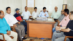 Balbir Ram Rattan, Vice Chairperson SC, ST, BC Corporation Ltd. during a meeting with his party workers in Jammu on Wednesday.