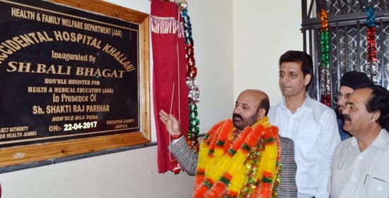 DODA: Minister for Health & Medical Education Bali Bhagat today inaugurated the newly constructed Accidental Hospital at Khellani in presence of MLA Doda Shakti Parihar.