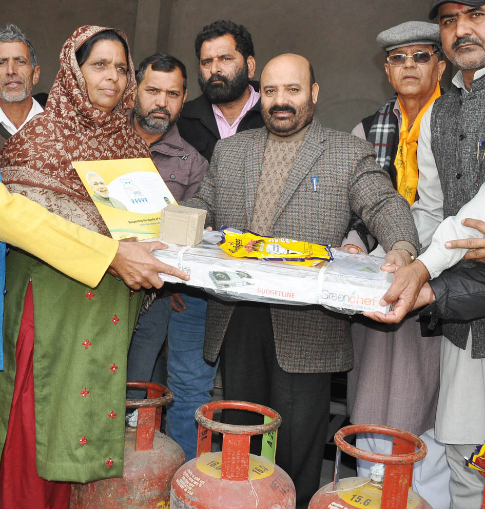 JAMMU: Extending the benefits of Government of India’s flagship programme Pradhan Mantri Ujjawala Yojana (PMUY) to the deserving beneficiaries, Minister for Health & Medical Education, Bali Bhagat today distributed 100 LPG connections among poor women of Panchayat Hakkel in Raipur-Domana area.