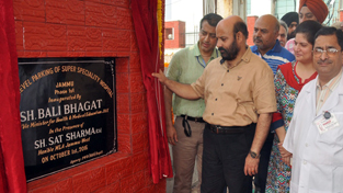 JAMMU, Oct 1: Minister for Health and Medical Education, Bali Bhagat today inaugurated first phase of multi-level parking at Super Specialty Hospital (SSH), Jammu.
