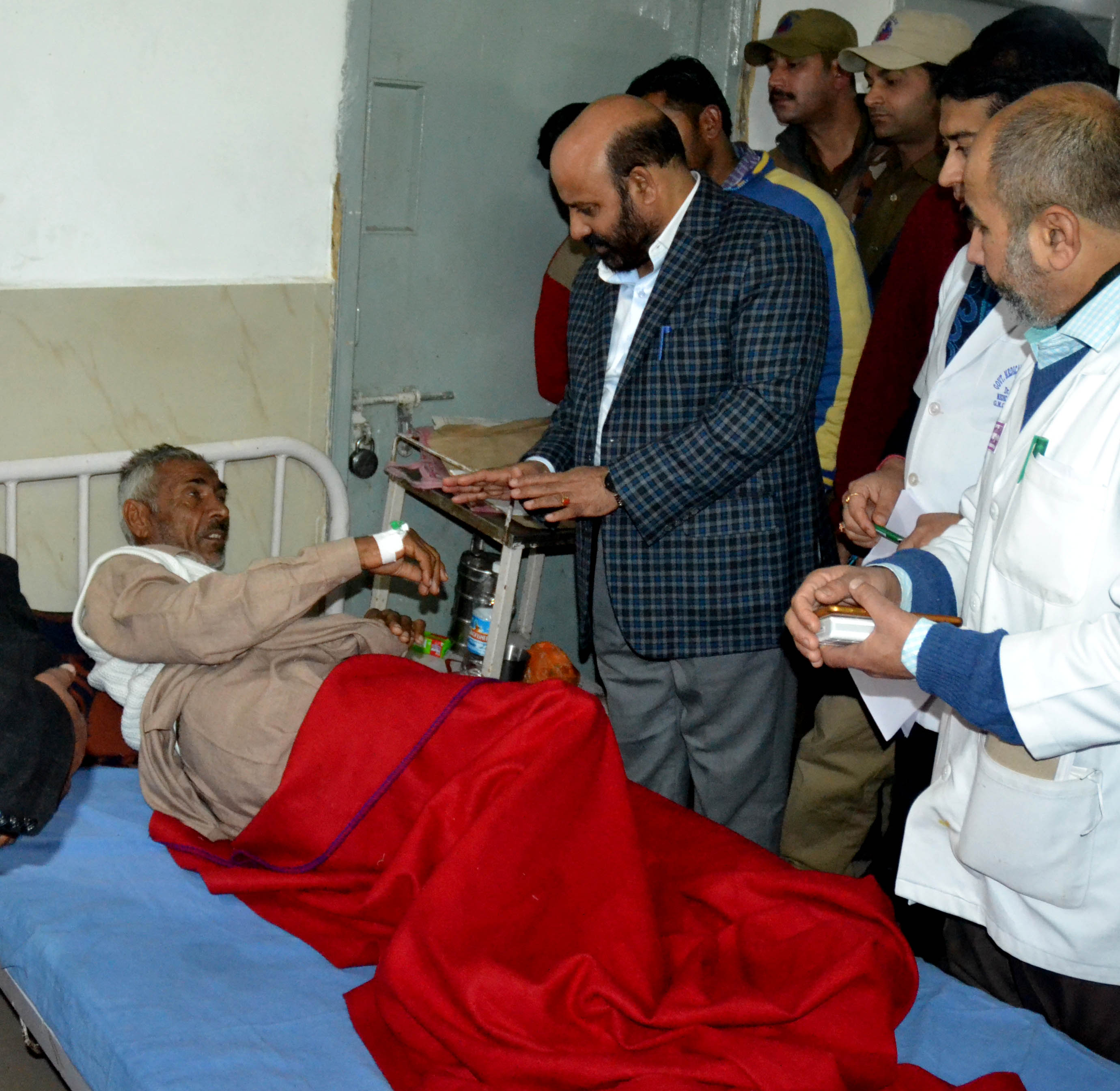 JAMMU: Minister for Health and Medical Education Bali Bhagat today visited Government Medical College (GMC) Hospital here to enquire about the condition of people injured in cross border firing.