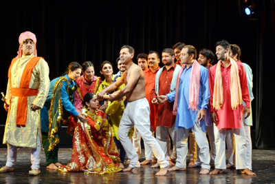 Vikrant Sharma, as ‘Paani Laane Wala’, left an indelible mark due to stellar performance that was a treat in terms of subtle acting supported by exemplary physical dexterity. Gauri Thakur as ‘Dulhan’ was successful in portraying the innocent bride but with steely resolve to give ultimate sacrifice to uphold cherished values. Versatile Anil Tickoo with his splendid voice control, body movements, Suresh Kumar for his heart-rending portrayal of bride’s father, were other notable veteran actors. The other members of the cast who also gave good performances included Neeraj Kant, Subhash Jamwal, Sumeet Sharma, Rahul Singh, Vanshika Gupta, Vrinda Sharma, Meenakshi Bhagat and Sanchita, Mahikshit Singh, Gautam Kumar, Bhisham Gupta, Shivam Singh, Abhi Bargotra, Shivam Sharma, Sanket Bhagat. The soulful music of the play was composed by Brij Mohan and Suraj Singh who also led the singing of the play and also gave an appreciable entry on stage as ‘Gujjar’. The lights of the play was designed and executed by Pankaj Sharma whereas the audiography of the play was designed and executed by Mohd. Yaseen.