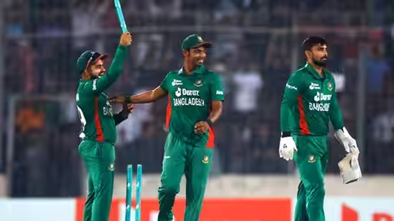 But pacer Hasan Mahmud rattled the stump of Adair (13) with a yorker and fast bowler Taskin Ahmed took the game literally away with three wickets in his first over.