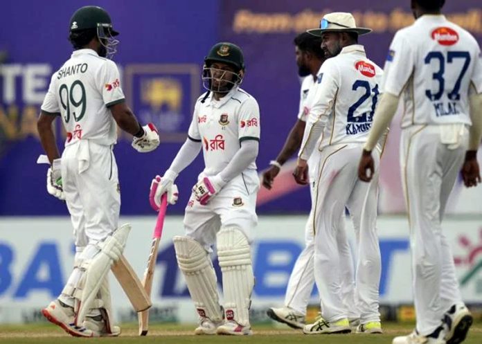 Off-spinner Nayeem Hasan removed first-innings centurion Pathum Nissanka with a peach that dipped and turned. Taijul Islam chimed in with a tidy burst, accounting for Lahiru Udara, Angelo Mathews and Dinesh Chandimal.