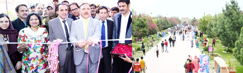 J&K Bank Chairman & CEO Parvez Ahmed inaugurating 2-day Spring Festival at Badamvaer park on Monday.