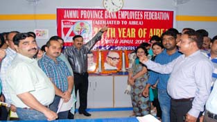 Bank employees celebrating 70th Foundation Day of AIBEA in Jammu on Monday. By Daily Excelsior - April 20, 2015 Share FacebookTwitterWhatsAppPinterestLinkedinCopy URLTelegramEmailTumblrReddItPrintKoo Bank employees celebrating 70th Foundation Day of AIBEA in Jammu on Monday. Bank employees celebrating 70th Foundation Day of AIBEA in Jammu on Monday. Follow our WhatsApp channel