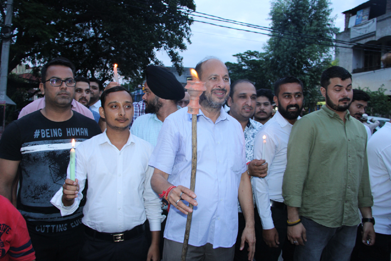 Today the Bar Association in furtherance of its decision for Jammu Bandh on 29th of August, 2022 (Monday) took out a torch & candle procession in the Gandhi Nagar Gole market and Apsra Bazar with massive participation of lawyers including sizeable participation of women lawyers. They were appealing to the people particularly the business community to make the 29th August, 2022 Bandh call a grand success.