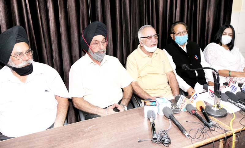 Presidium of J&K High Court Bar Association, Jammu during a press conference on Monday. -Excelsior/Rakesh