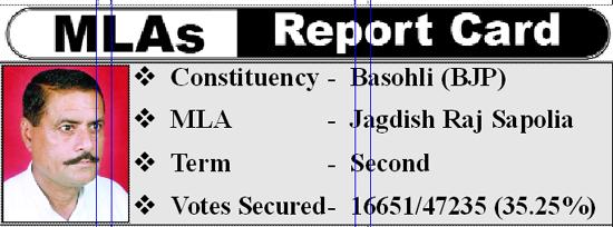 Sapolia takes credit for launching and completion of various development projects in his Constituency. He says the construction of 176 crore Basohli bridge was the result of his hard efforts. Besides, it was by his efforts that the Degree College was opened at Mahanpur, name of Bhoondh was changed as Sheetal Nagri and Sheetal Nagri and Dar Manhanpur were given block status.