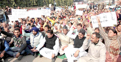 JAMMU, Jan 31: A large number of Block Congress Committee members, Congress workers from Bishnah and activists of Youth Dogra Saddar Sabha held protest demonstration followed by dharna near Press Club here today.
