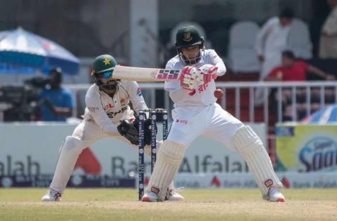 Earlier, in a dramatic first session Bangladesh set up its victory as Pakistan limped to 108-6 and lost five wickets. Captain Shan Masood (14) was dismissed in the second over of the day when Hasan found a faint edge and had the Pakistan skipper caught behind.